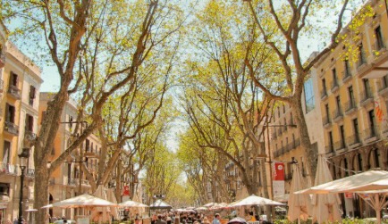 스페인 바르셀로나에 위차 한 람블라스 거리는 구시가지에 위치하고 있습니다. 카탈루냐 광장에서 파우광장 까지 거리로 1km 정도의 길이입니다. 샹젤리제 거리가 세상에서 가장 아름다운 거리라고 한다면, 스페인 사람들은 이 람블라스 거리를 세계에서 가장 매력적인 거리라고 말합니다. 저는 샹젤리제는 인정하기 조금 어렵지만 람블라스 거리는 매력 적다는 말에 동감합니다. 정말 각종 상점부터 기념품 가게, 길거리 행위 예술가, 전 세계의 여행객들로 인산인해를 이루는데 그 속에는 <스페인>만의 분위기와 특유 매력이 자체적으로 뿜어져 나오는 거리입니다. 이 거리를 5분만 걸어도 "아~ 이래서 다들 스페인~스페인 하는구나!"라고 느끼실 수 있습니다. 다만 소매치기 강국의 나라인 만큼 유명한 거리일수록 소매치기들이 기승을 부립니다. 소지품 관리에 신경 쓰셔야 합니다.